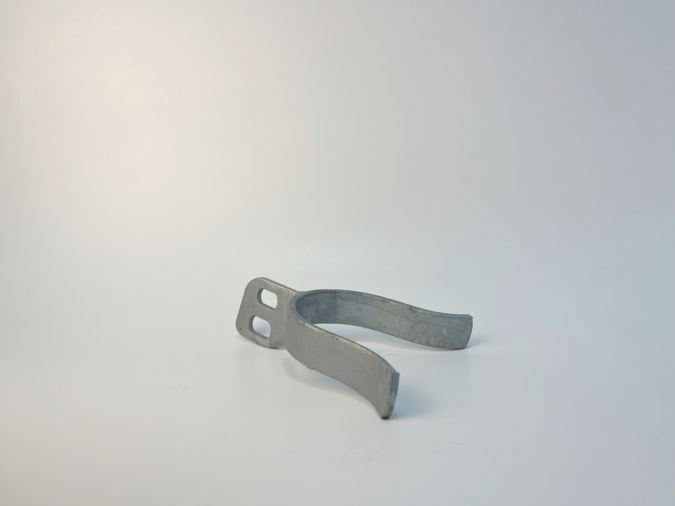 This component is part of an assembly for a fork latch, which is used to secure gates. It’s forked design allows it to be dropped down over gate posts to prevent a gate from swinging open or shut. This part is connected to hanger, either in collar or U-bolt style, which allows it to be affixed to a gate’s frame. It’s design leave’s room for a padlock or other locking device when used in tandem with a fork that prevent the assembly from lifting up, keeping the gate locked closed.
